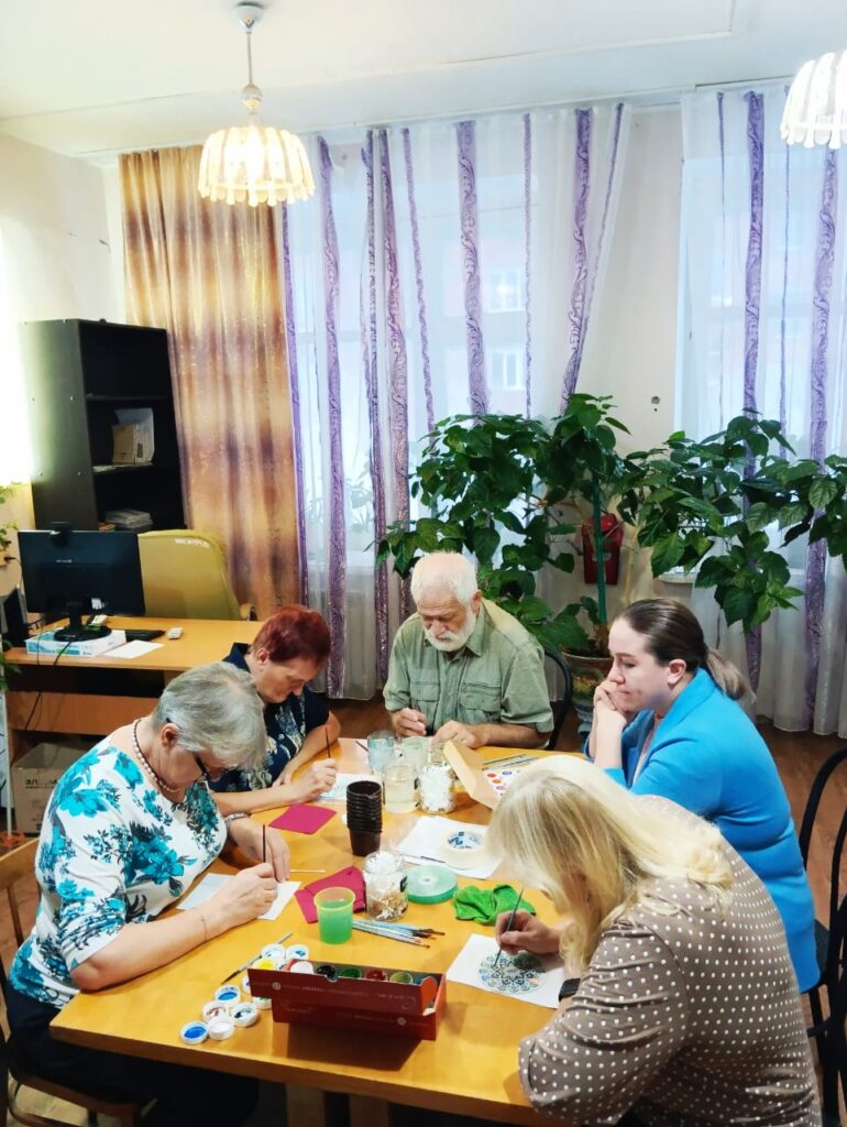 6 ноября 2025г. в рамках программы «Активное Сибирское долголетие» в «КЦСОН Туруханский» работником Дома культуры и досуга г. Игарки был проведен мастер – класс «Точечная роспись».